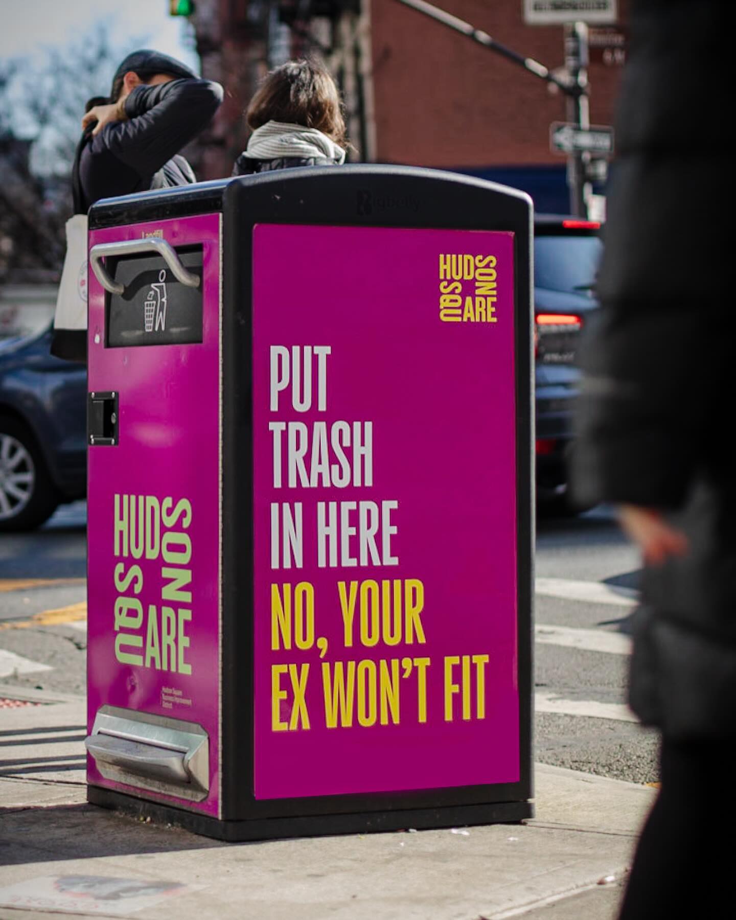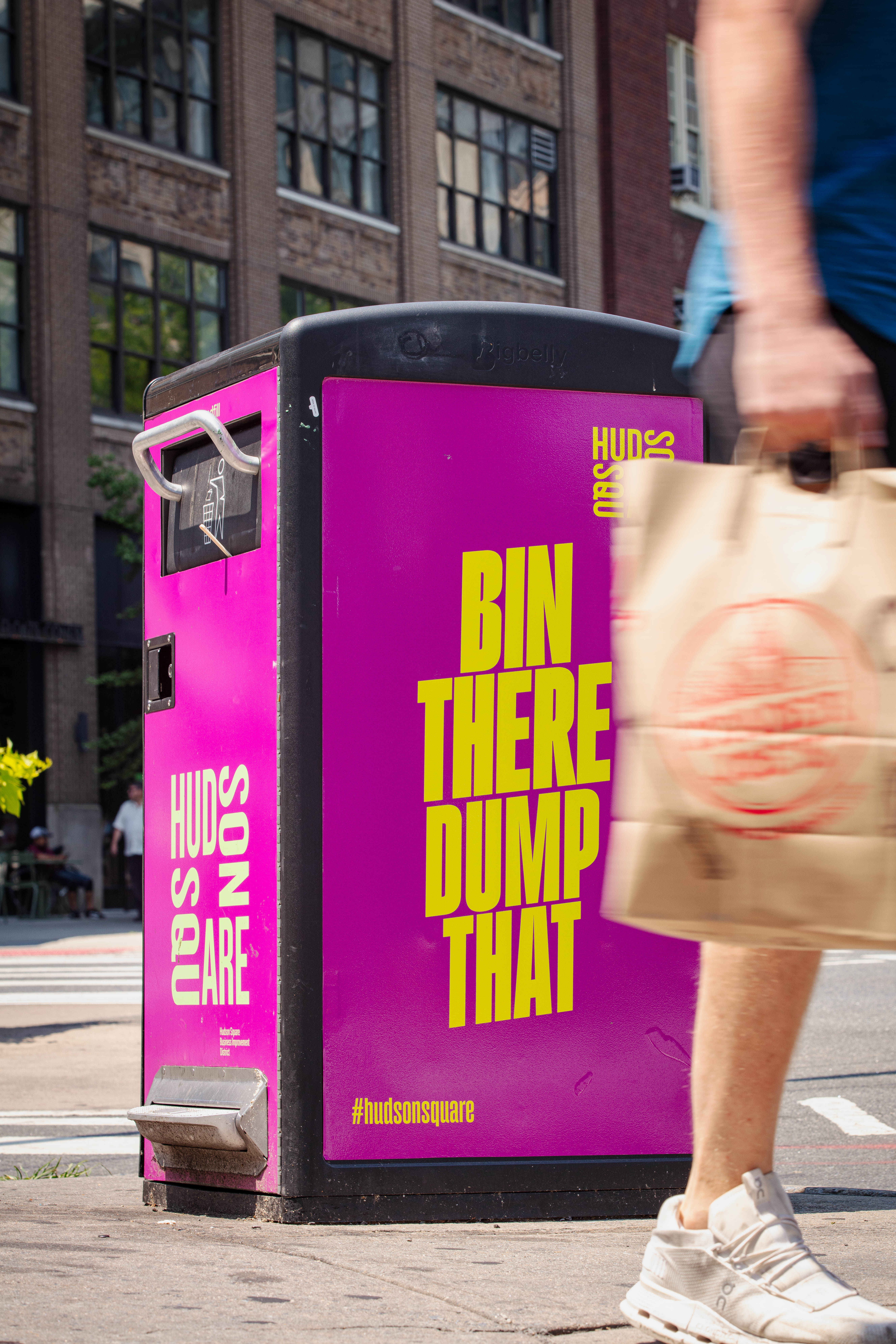 We began by branding the most omnipresent and important elements in the neighborhood - the trash cans. Using the impossible-to-ignore combination of berry magenta and sunny yellow, we catch passersby attention and then reel them in with a snarkily funny trash-based headline. These proved such a success that other neighborhoods have started labeling their bins with similar (though not as funny) headlines.