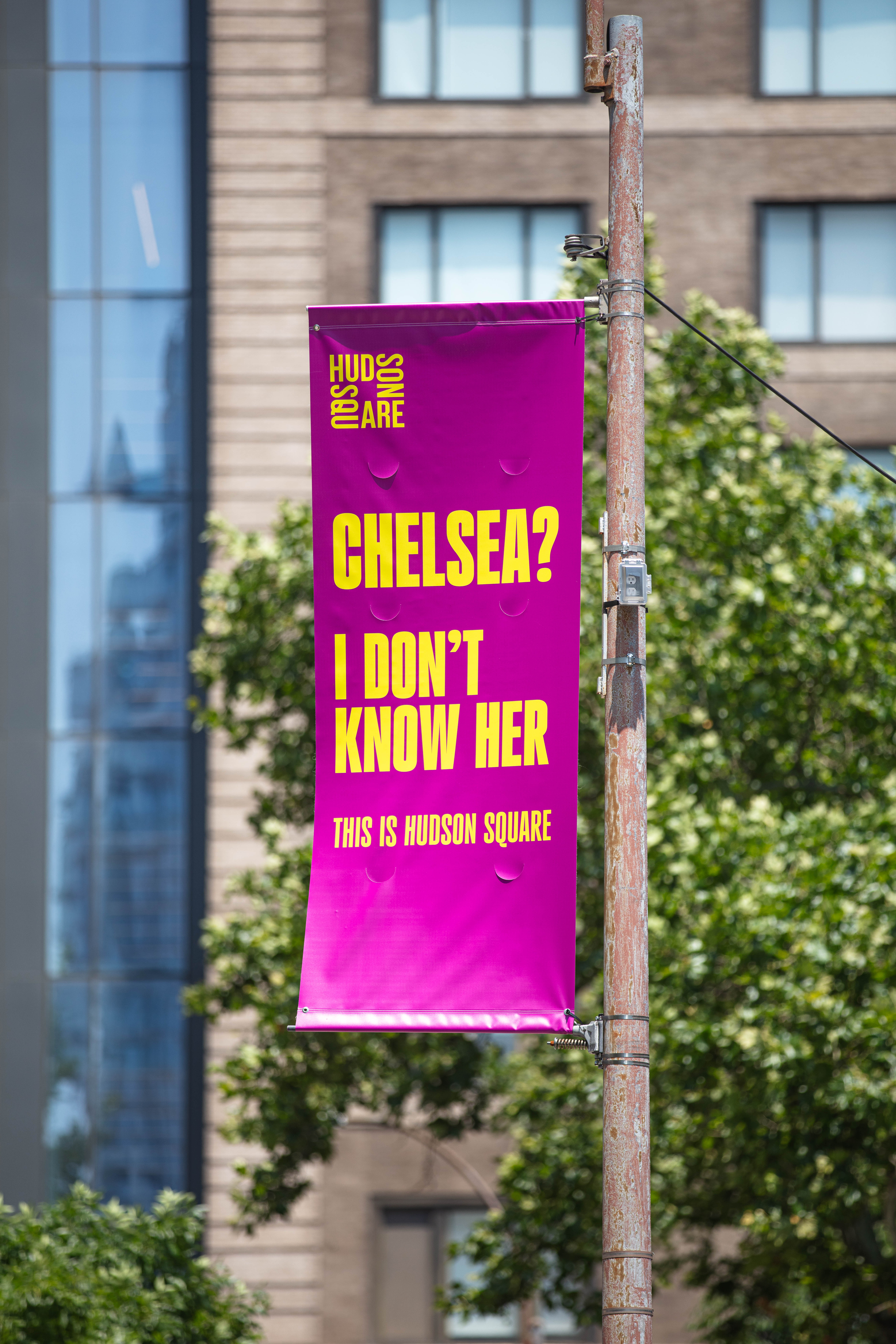 Then, we extended this style and tone to every lamp-post banner in the area. Since many workers don’t realize they’re working in Hudson Square, we decided to remind them that “This is Hudson Square” while poking fun at surrounding neighborhoods.